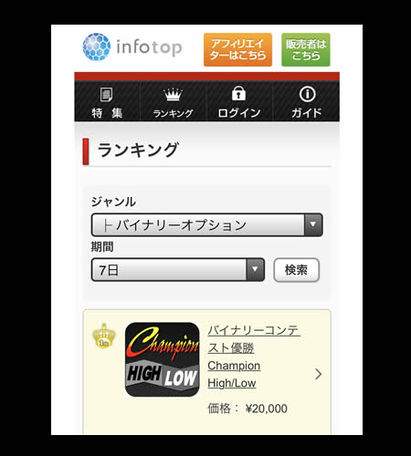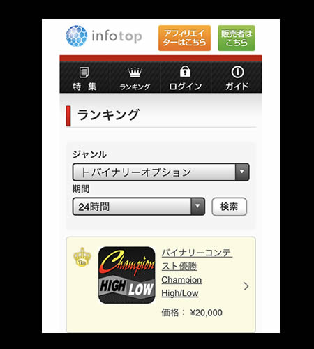 Champion High/Low は、2020年12月に公開後すぐに、Infotopのバイナリーオプション部門で売上1位となり、現在まで月間ランキングで滑り落ちる事なく、不動の地位を守ってきました。